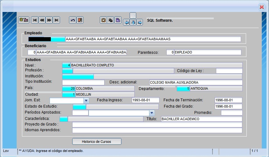 Una vez da clic sobre el icono, se muestra el menú de Información