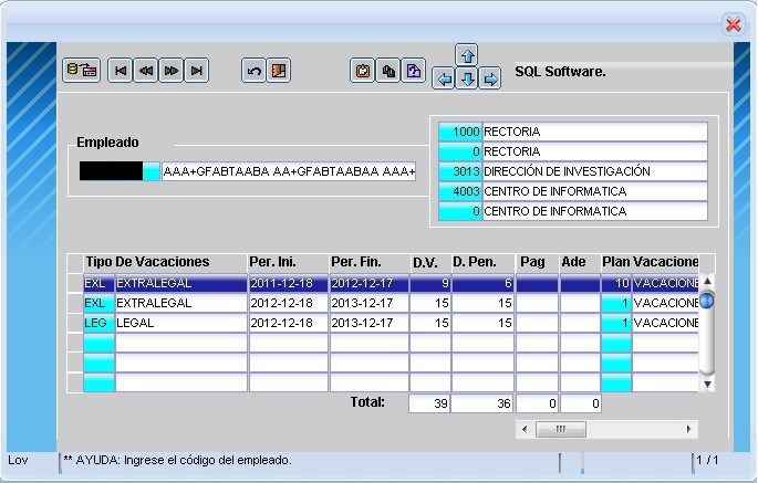 Se muestra la pantalla donde el empleado podrá consultar los dias de